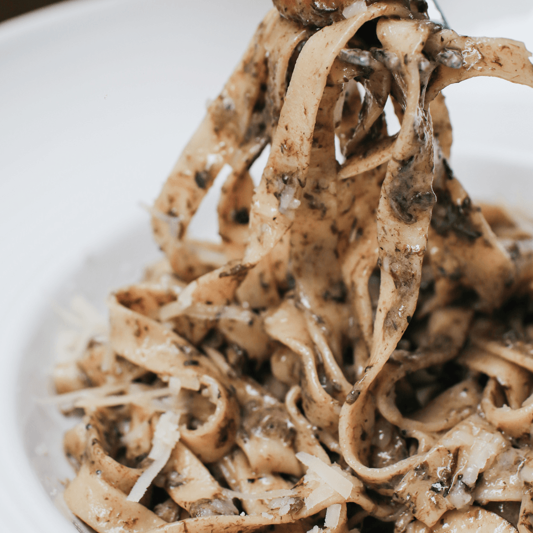 Combine the pasta with the mushroom mixture over low heat, tossing to mix. Serve hot, garnished with fresh-grated Parmesan cheese.