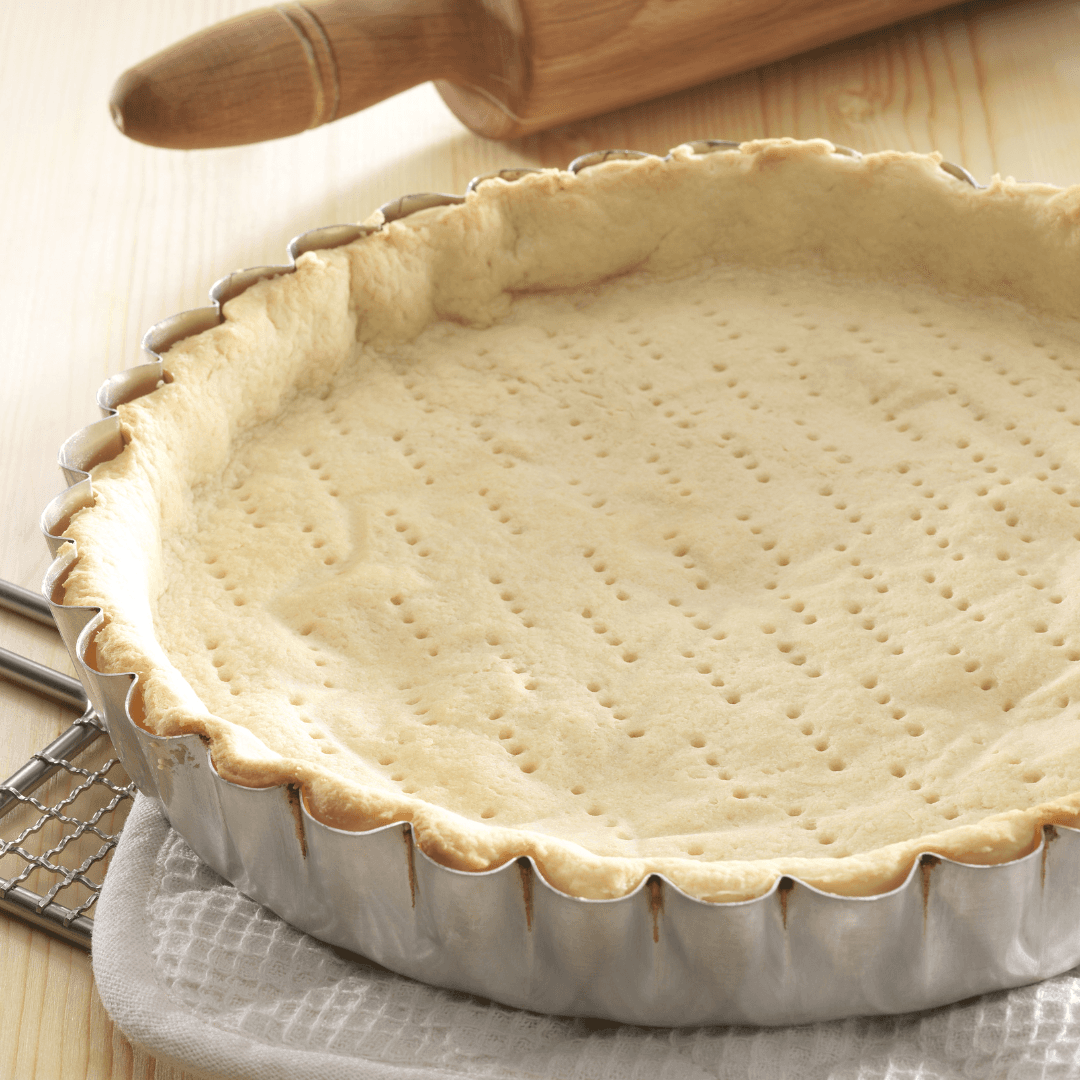 Roll out one dough disc on a floured surface to fit a 9-inch pie pan. Transfer it to the pan, and trim the edges. Add the apple filling. Roll out the second dough disc and place over the filling. Trim and crimp the edges. Cut slits in the top crust to allow steam to escape. Brush the top with the egg wash.